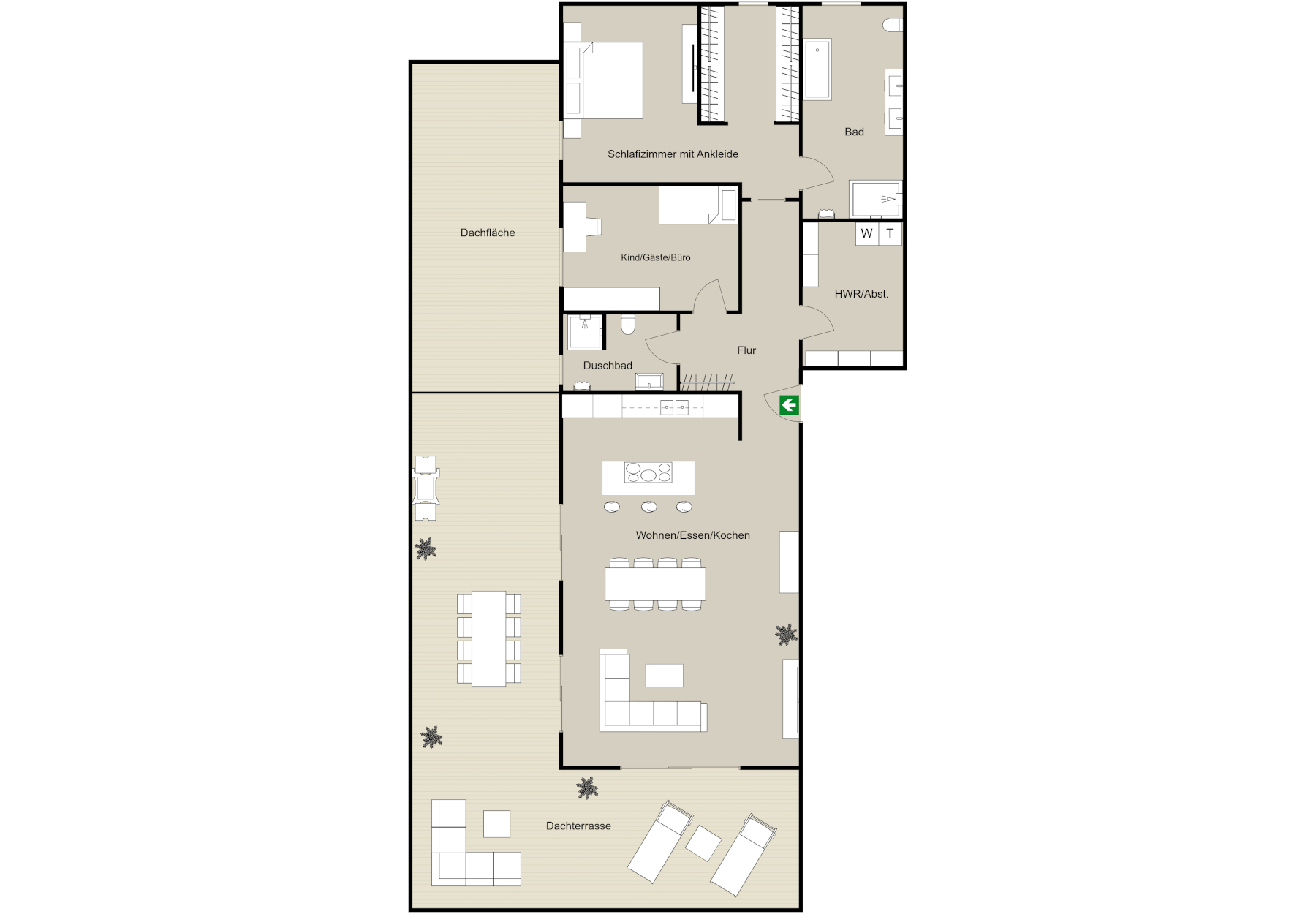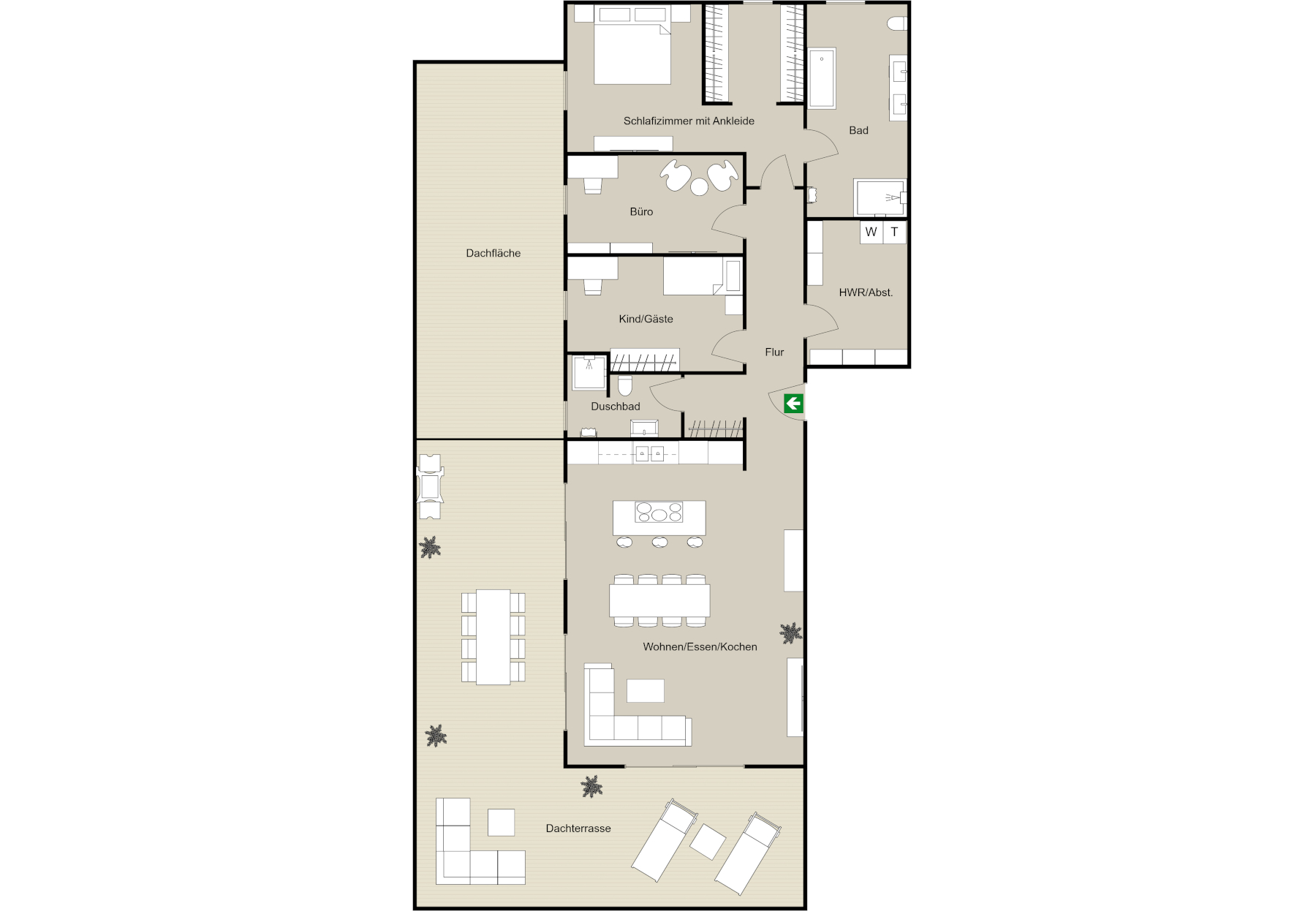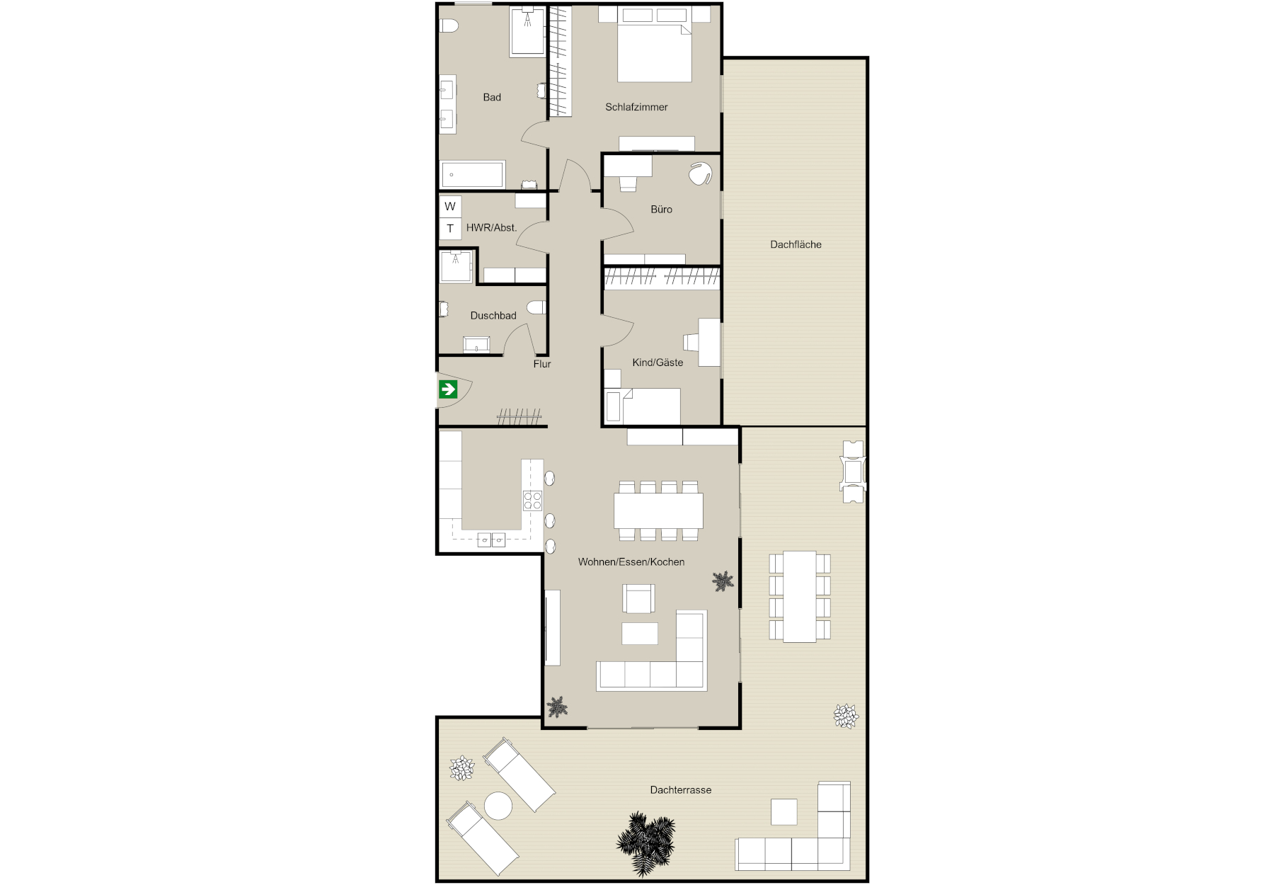 - Dachterrasse: ca. 40–100m²