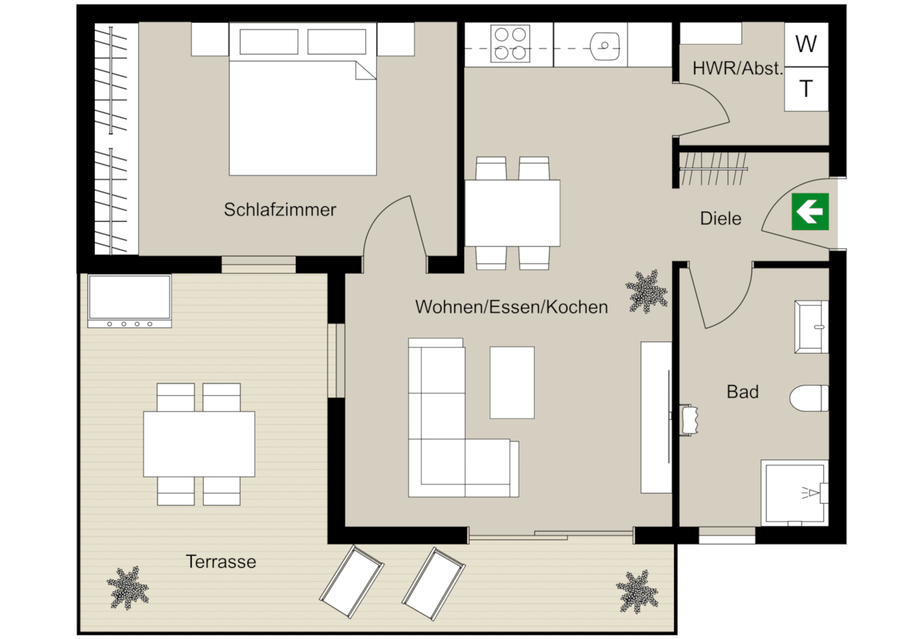 - Die in den Grundrissen dargestellte Möblierung dient ausschließlich der Visualisierung und kann selbstverständlich individuell angepasst werden.